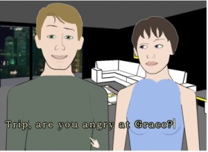 system. Telling the player that they have freedom to do whatever they like because “you” are actually there is not helpful enough: players need a clear interaction pattern (how can I be sure they heard what I said?) and a clear character (“I” am supposed to be an old friend but I don’t know anything about them). The drama fails when I find myself questioning gameplay and character in these ways. On the other hand Façade succeeds when I draw on the game-player’s familiar action of exploring alternative paths, or when I am scripted by the social role of “friend” to offer Tripp and Grace advice or encourage them to express their feelings.